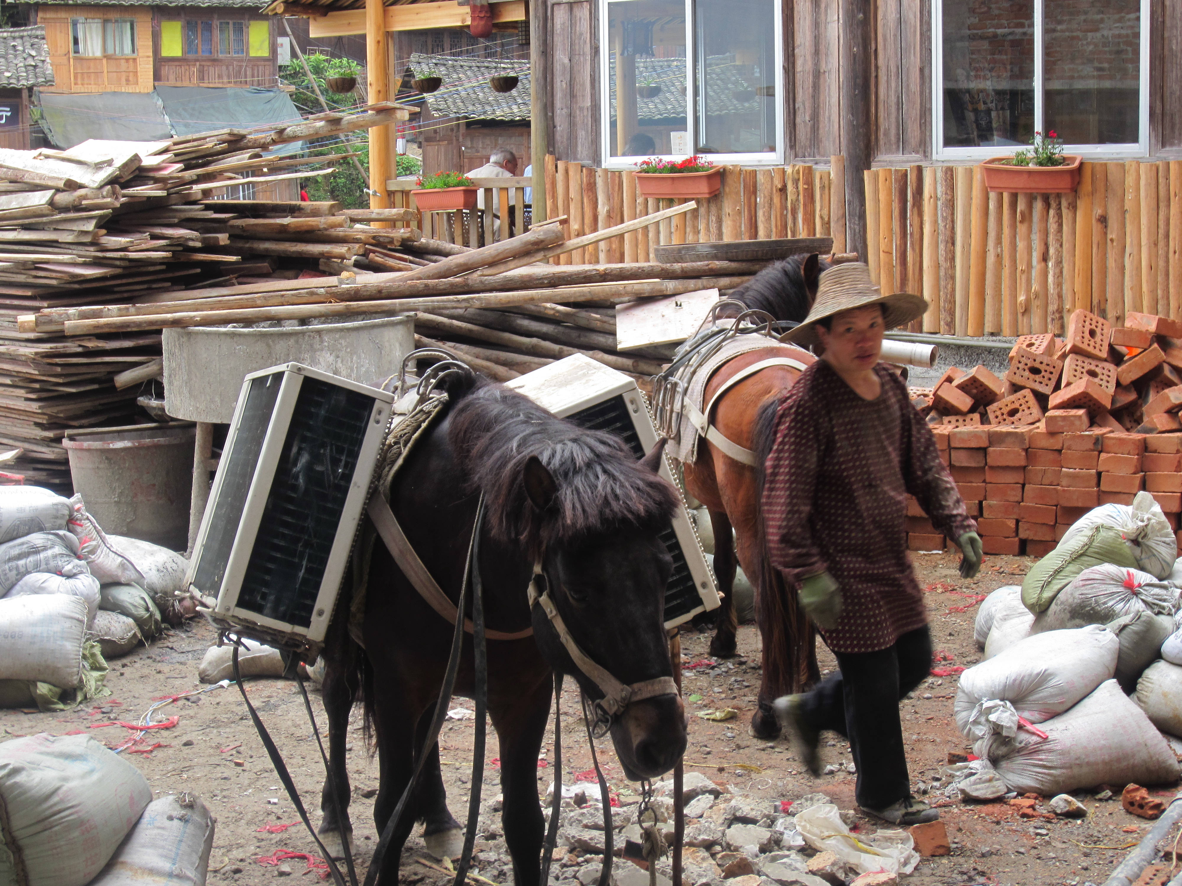 All over this stony, winding town are small work ponies. Also, some farmers still use water buffalo to farm. Chickens and their chicks roam everywhere.
