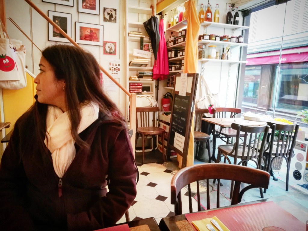 Du Pain et Des Idées (34 rue Yves Toudic) was recommended in our German guidebook and it was as good as purported. We tried what was named the best croissant in the world, and this title is well earned. We also tried their standard bread, their bread pudding and a raisin snail. There we were on a drizzly, chilly day sitting outside enjoying buttery sweet pastries and I felt both completely at home within myself and a million miles away.